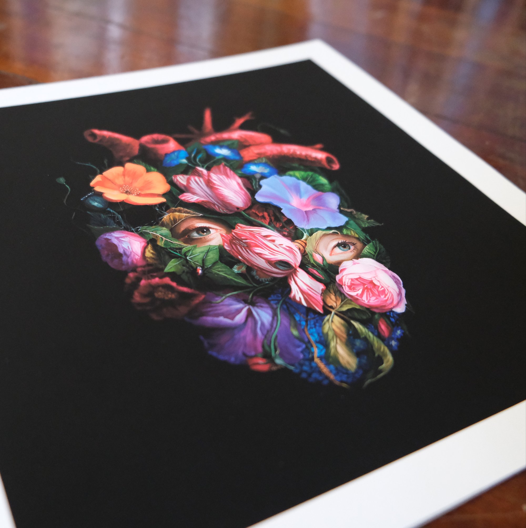 “The Heart” original painting was created at the end of 2021 and exhibited the following year as part of Corey Helford Gallery’s annual showcase called The Art Collector Starter Kit. The original has sold to a private collector.
