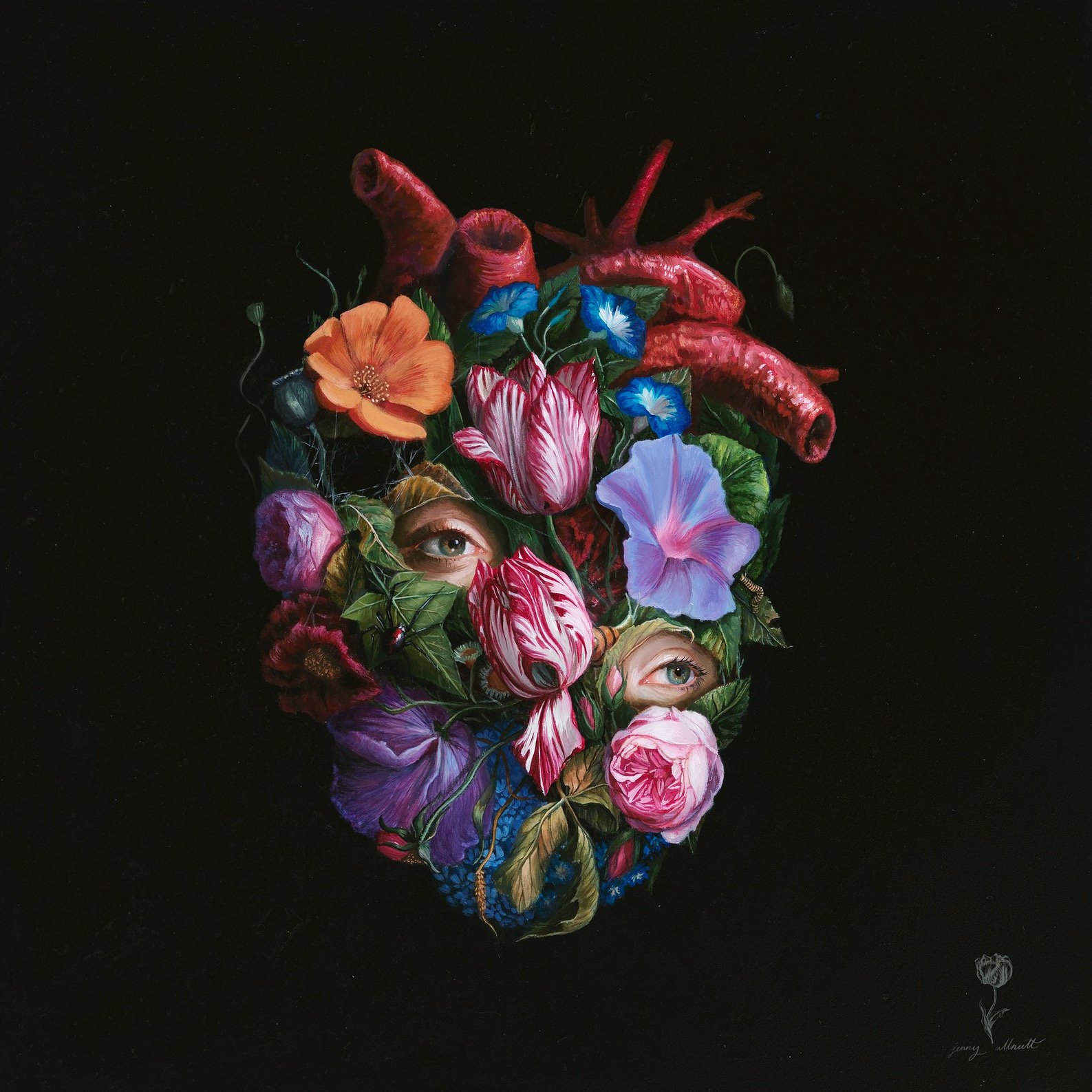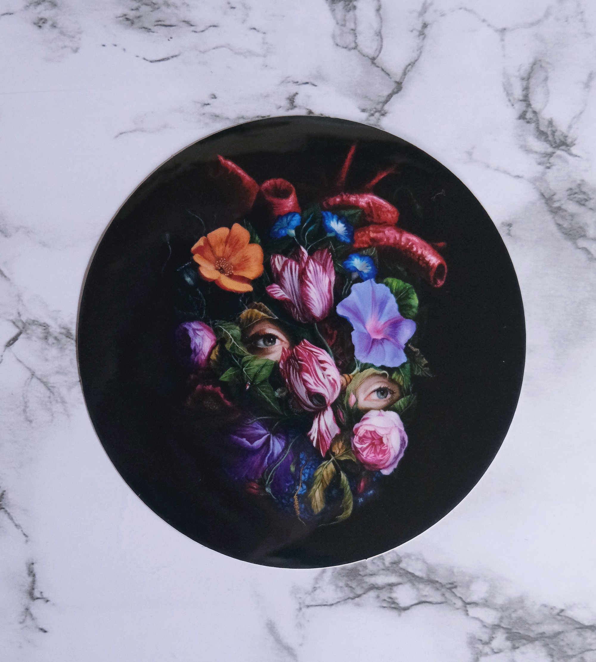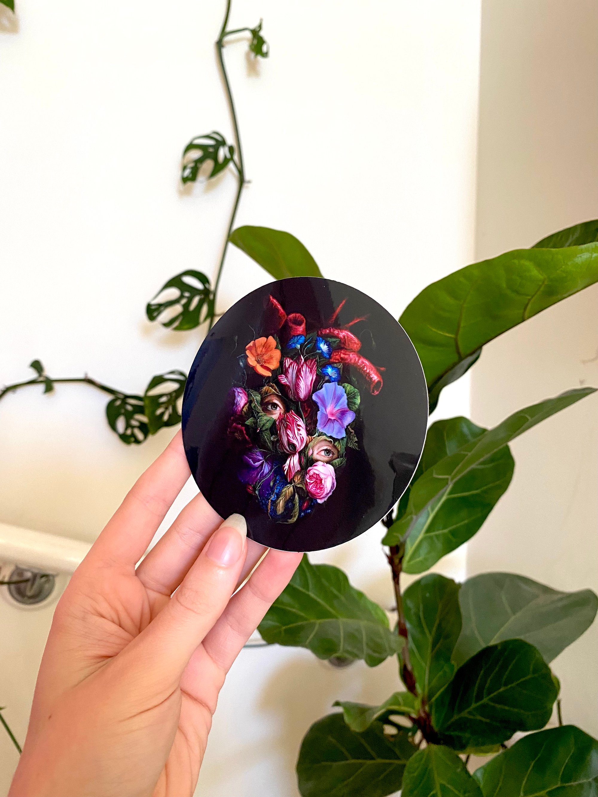 Vinyl sticker of my painting "The Heart" exhibited at Corey Helford Gallery as part of the Art Collector Starter Kit show January 2022.